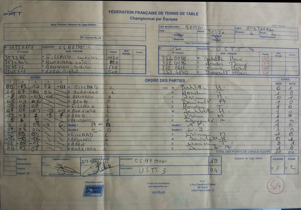 | Détails | Equipe 7 | Division 4 – Poule L | Défaite | 10-4 contre Betton CS 4 |
