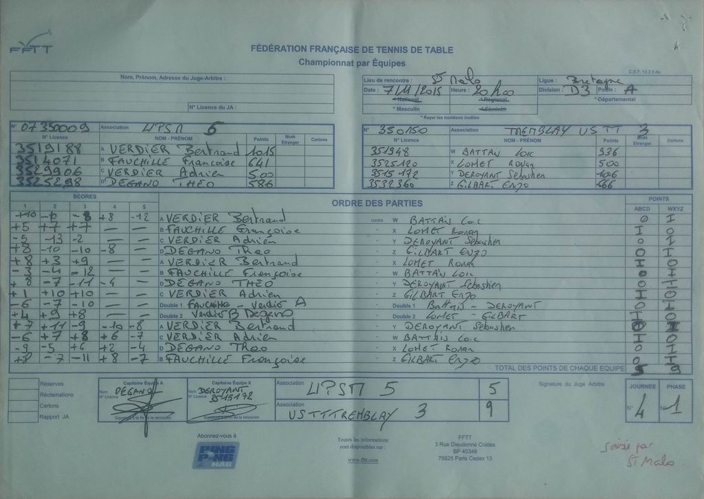 | Détails | Equipe 3 | Division 3 – Poule A | Victoire | 9-5 contre Saint Malo CJF/UP 5 |