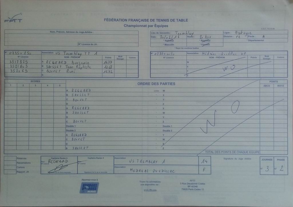 | Détails | Equipe 1 | Pré-Régionale – Poule A | Victoire | 14-0 contre Médréac-Quédillac UP 1 |