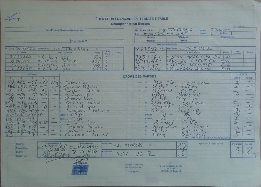 Les résultats de la 3ème journée de la phase 2 sont disponibles.