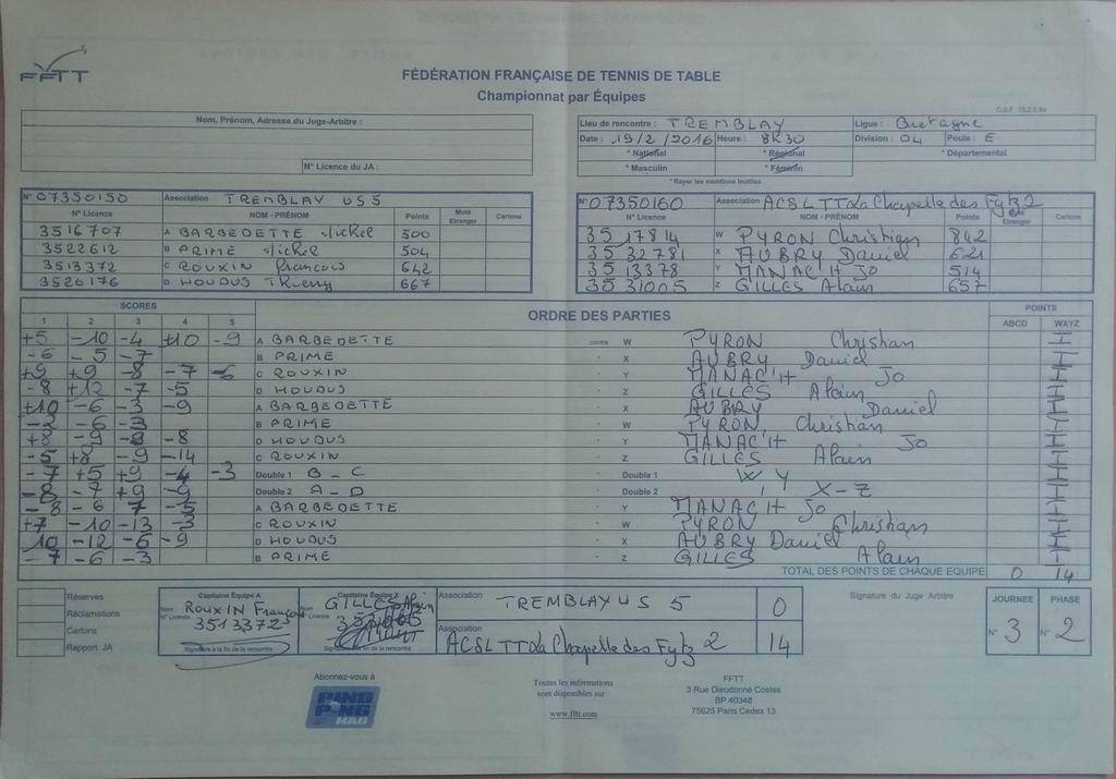 | Détails | Equipe 5 | Division 4 – Poule E | Défaite | 14-0 contre La Chapelle des Fougeretz 2 |