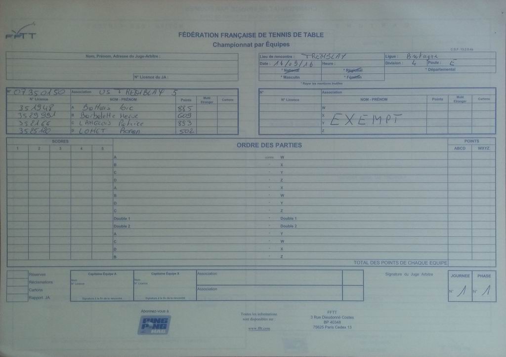 | Détails | Equipe 5 | Division 4 – Poule E | Exempt |
