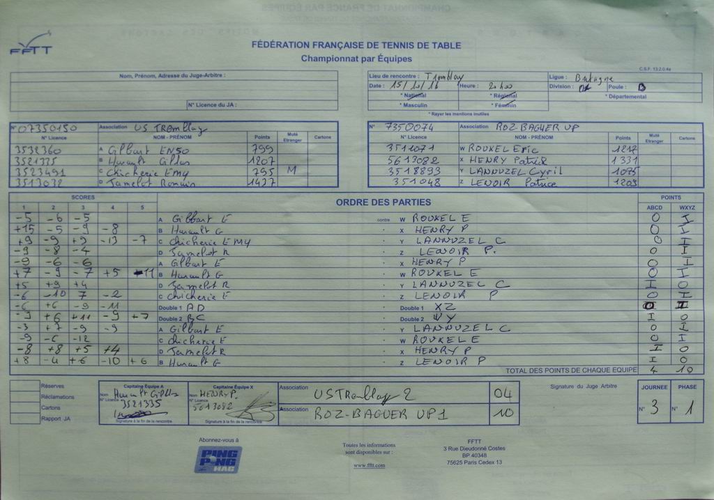 | Détails | Equipe 2 | Division 1 – Poule D | Défaite | 10-4 contre Roz-Baguer UP 1 |