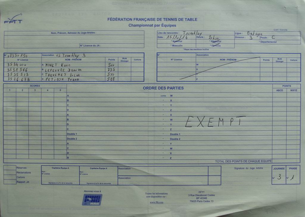 | Détails | Equipe 3 | Division 3 – Poule C | Exempt |
