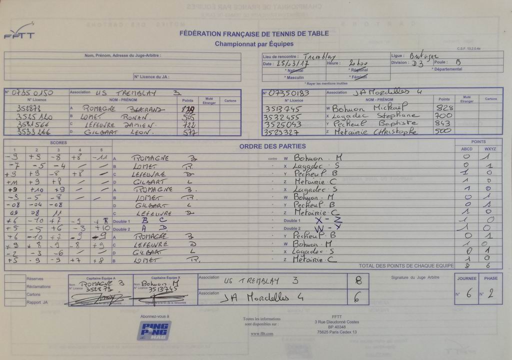 | Détails | Equipe 3 | Division 3 – Poule B | Victoire | 8-6 contre JA Mordelles 4 |
