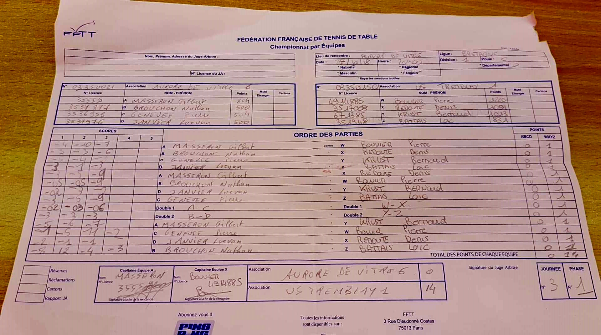 | Détails | Equipe 1 | Division 1- Poule C | Victoire|14-0 contre Aurore Vitre 6 |