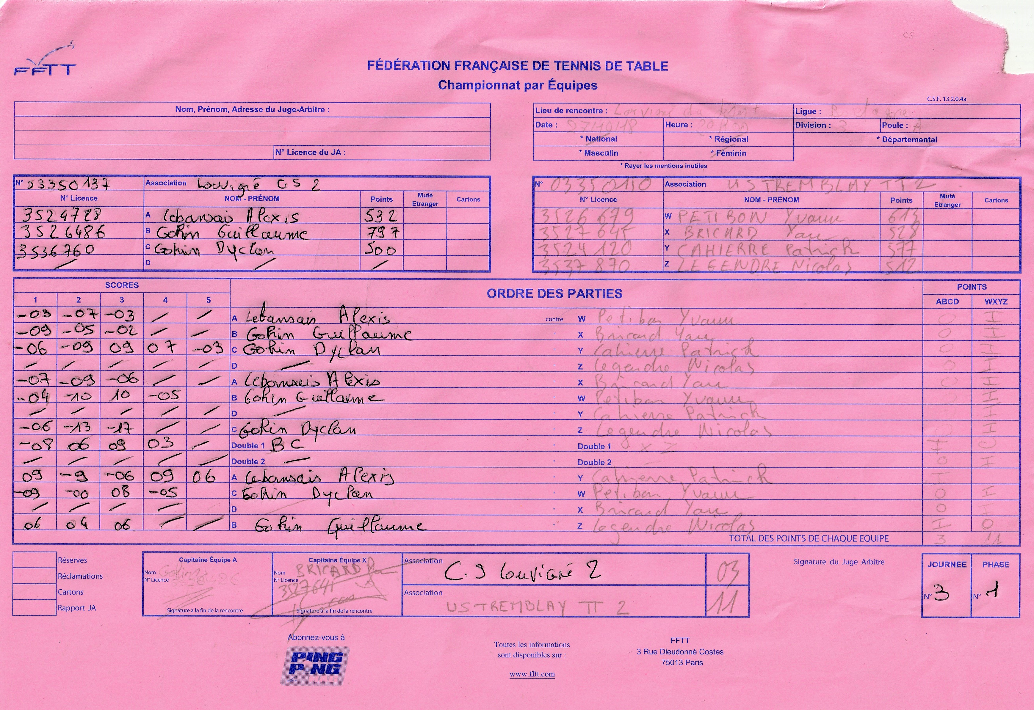 | Détails | Equipe 2 | Division 3- Poule A | Victoire|11-3 contre Louvigné 2 |