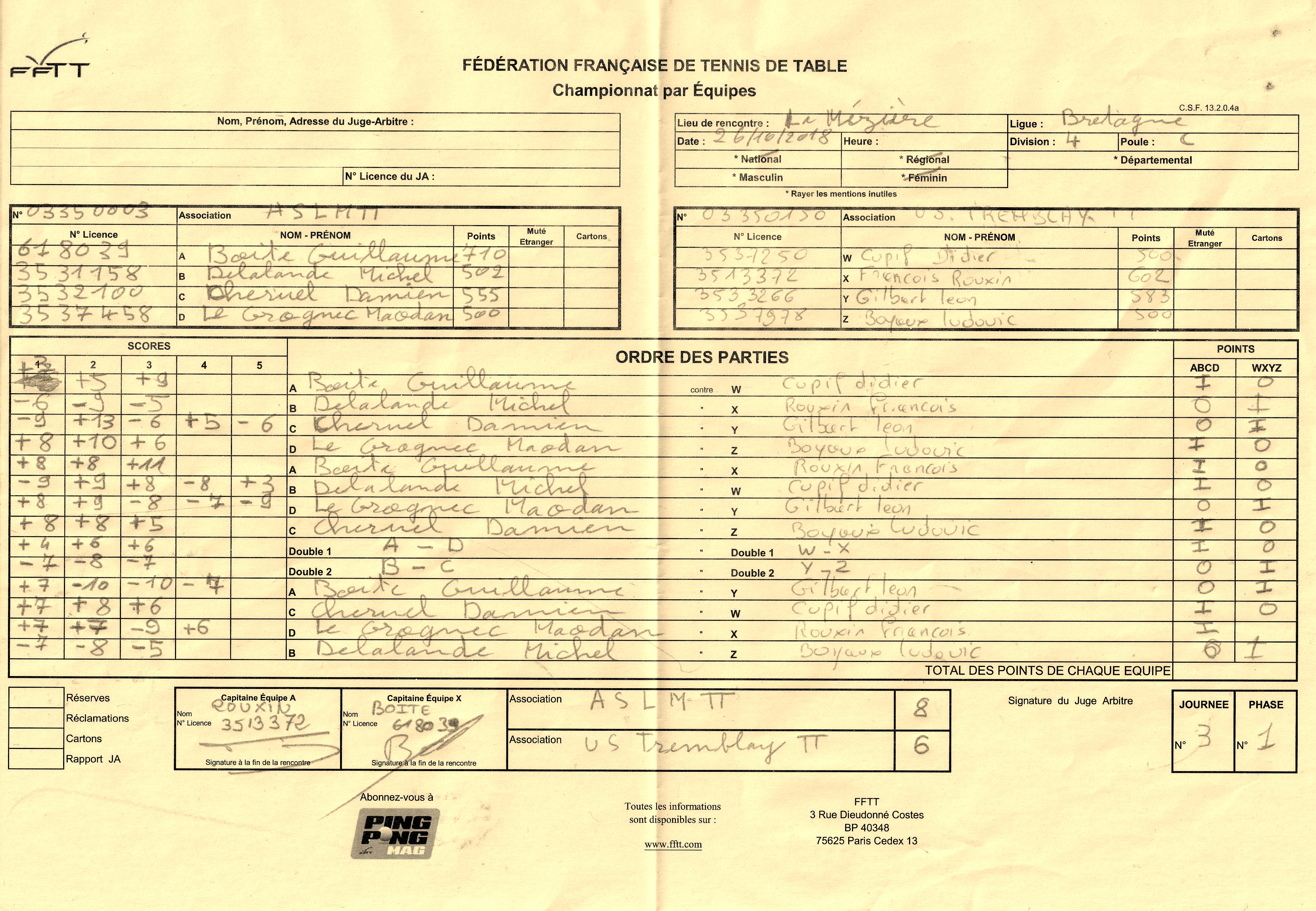 | Détails | Equipe 3 | Division 4- Poule C | Défaite| 8-6 contre La Mezière 1 |