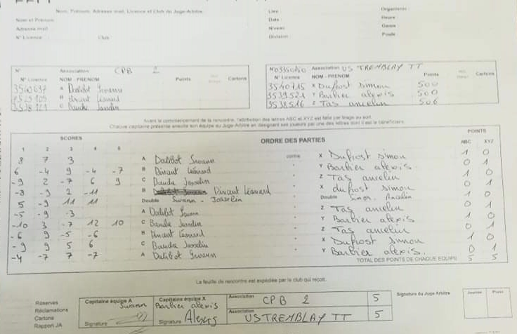 | Details | Equipe cadets / juniors 1 Division 3 – poule E | Match nul 5 – 5 contre CPB 2 |