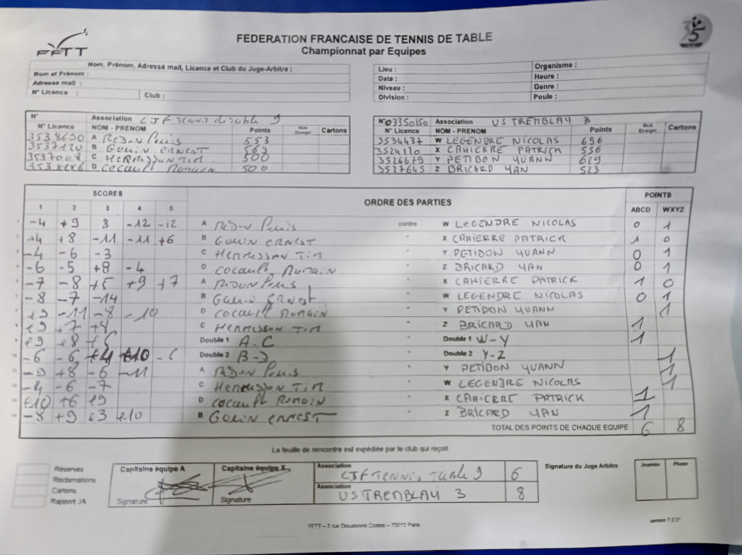 | Détails | Équipe 3 | Division 4 – Poule A | Victoire| 8 – 6 contre ST MALO CJF-UP 9 |